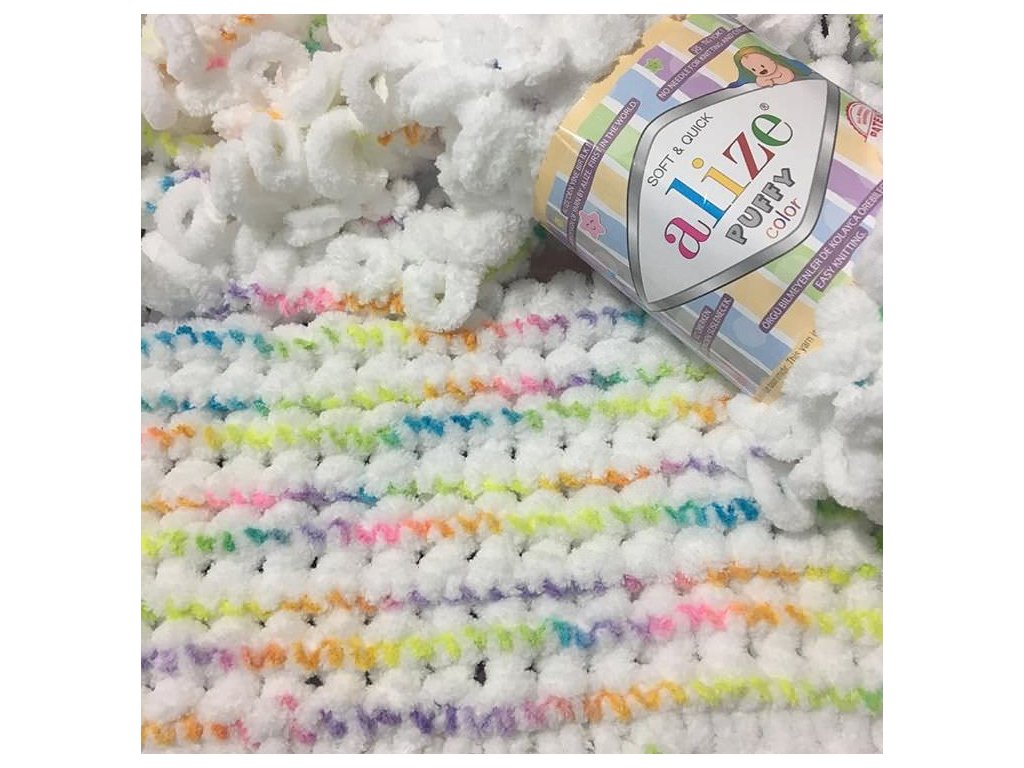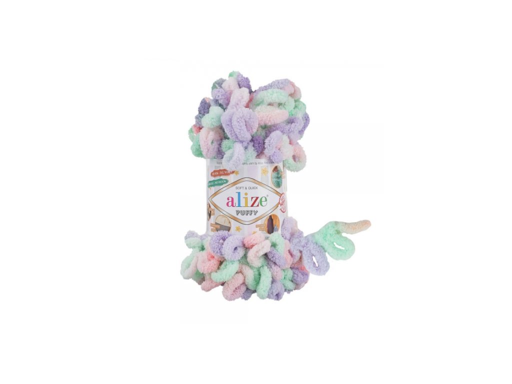 Alize Puffy Color je super mäkká priadza pre zručné a predstavivé pletenie. Na základe nežného dotyku zamatových nití je možné pliesť rôznymi spôsobmi aj bez pletacích ihiel a háčikov. Má zamatové boucle, ktoré sa ľahko ručne pletie a výsledkom je objemná inovatívna štruktúra.